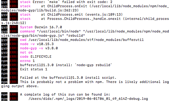 gyp ERR! stack Error: EACCES: permission denied, mkdir '/usr/local/lib/node_modules/stf/node_modules/dtrace-provider/build'