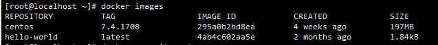 centos 7.4.1708 295a0b2bd8ea 4 weeks ago 197MB