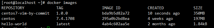 centos7-vim-by-dockerfile 1.0.0 6148376c2a1f 24 minutes ago 350MB
