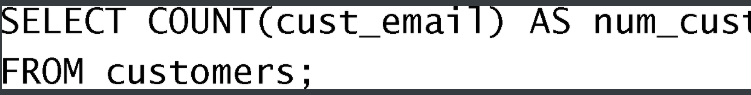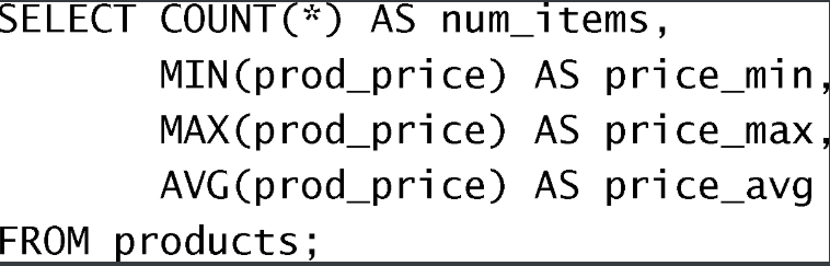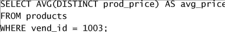 注意 如果指定列名,则 DISTINCT 只能用于 COUNT() 。 DISTINCT不能用于 COUNT(*),因此不允许使用COUNT(DISTINCT),否则会产生错误 。类似地, DISTINCT 必须使用列名,不能用于计算或表达式。