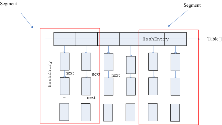 ConcurrentHashMap采用分段锁的思想,将整个table分成不同的segment。每个Segment配有一个锁,这样每个段都能并行的做增删改查等功能。