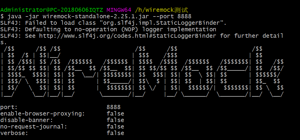 WireMock服务器可以在其自己的进程中运行,并可以通过Java API,HTTP上的JSON或JSON文件进行配置。一旦你已经下载独立的JAR ,并通过命令运行起来即可: