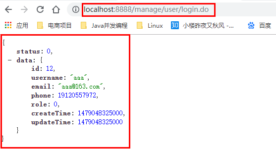运行main函数,并访问 http://localhost:8888/user/1 以及 http://localhost:8888/manage/user/login.do ,观察返回结果,如下: