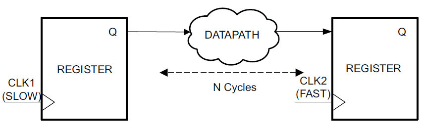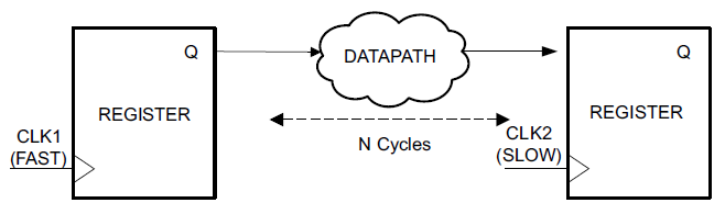 set_multicycle_path N -setup -from [get_clocks CLK1] -to [get_clocks CLK2]