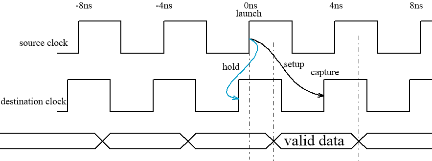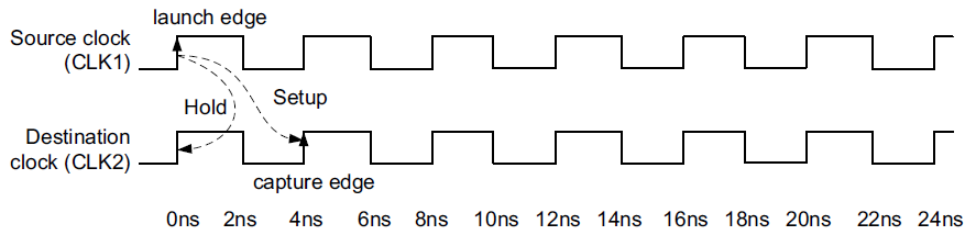 1)、默认建立路径的周期倍数是相对于destination clock,使用-start属性可以修改为相对source clock;