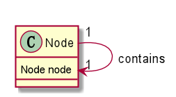 2.3自关联,在系统中可能会存在一些类的属性对象类型为该类本身,这种特殊的关联关系称为自关联。例如:一个节点类(Node)的成员又是节点Node类型的对象。如下UML图所示:
