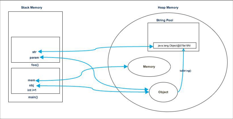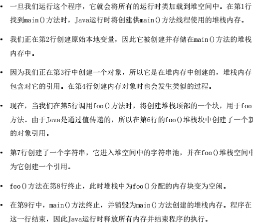 Java程序中堆和堆栈内存结构示例