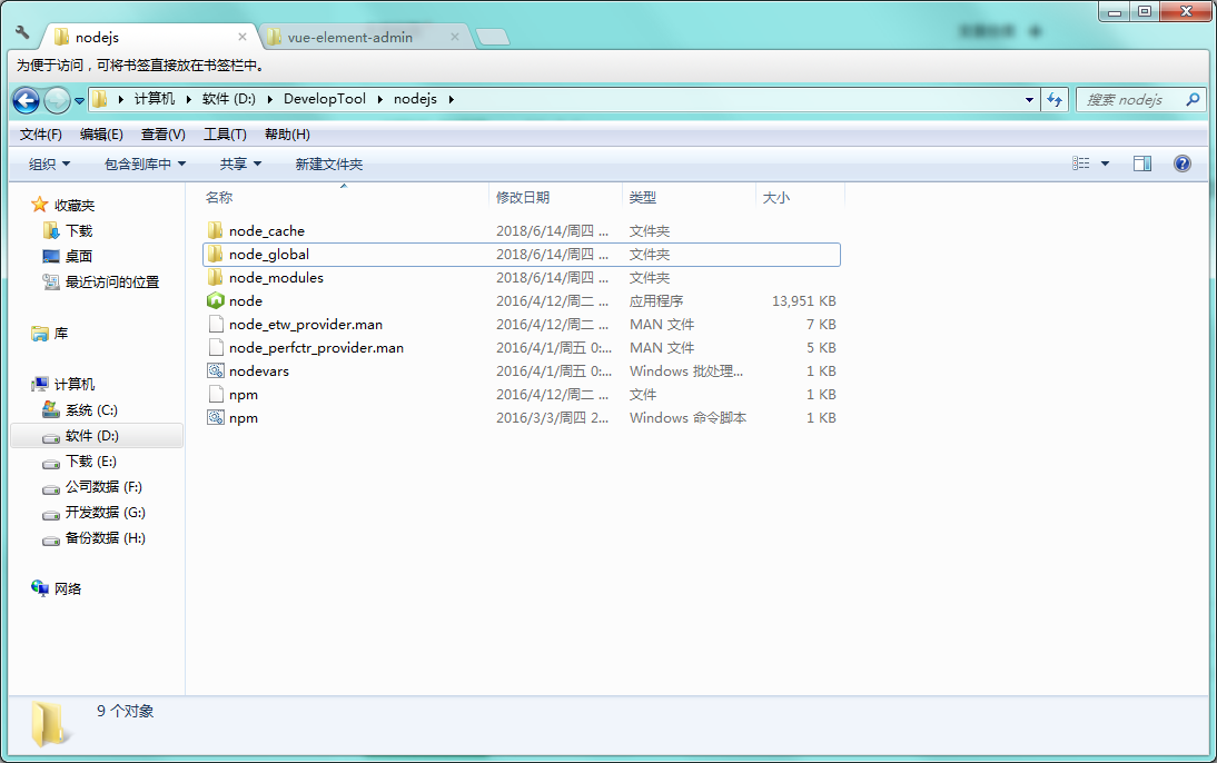 配置npm的全局模块的存放路径以及cache的路径,在node根目录下建立node_cache和node_global文件夹。