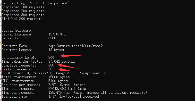 ab -n 300 -c 300 请求地址