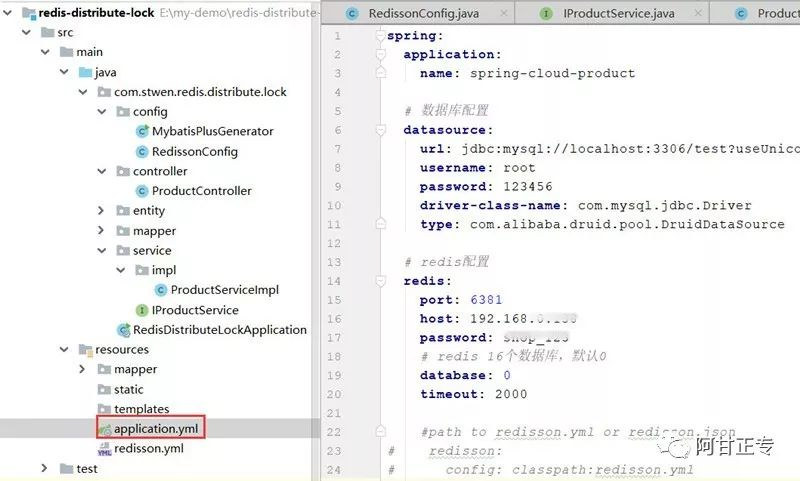 注:本示例为方便演示,仅提供如何实现redisson分布式锁方案,库存直接读取数据库,自己可以改造放到redis等缓存中,这个不会的自己去脑补。