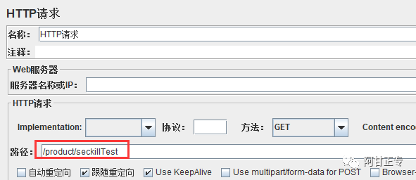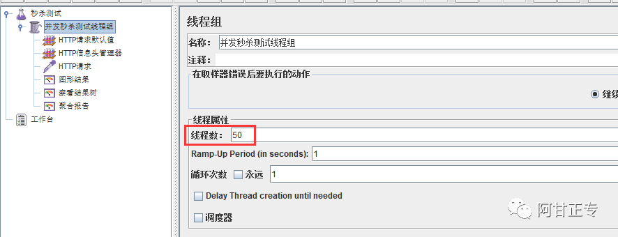 8、使用并发测试工具类,如jmeter ,新建一个测试任务,并发线程设为50或其他,模拟多人同时并发秒杀某个商品,启动项目,然后测试:
