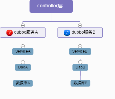 也就是说“dubbo服务A”即是提供者也是消费者(dubbo服务B的调用),只有在"dubbo服务B"调用成功的情况下才会对“dubbo服务A”事务提交。