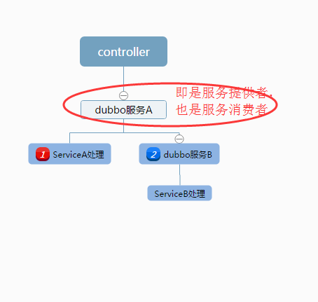 - 即是生产者又是消费者的dubbo服务,只能进行“唯一”dubbo服务调用。