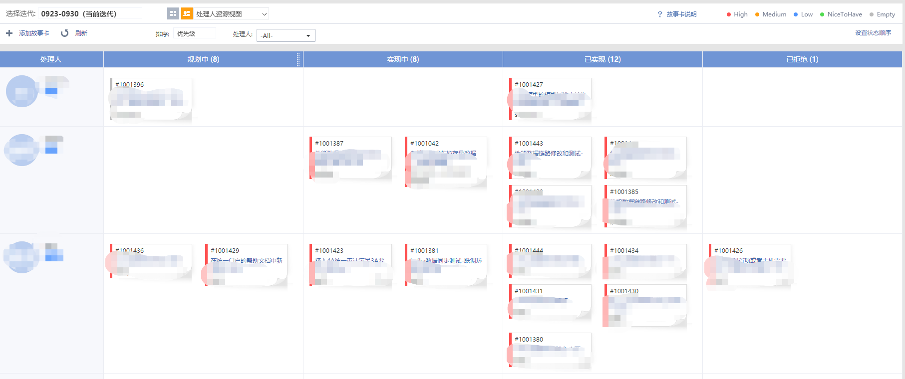 另外TAPD提供故事墙的形式展示冲刺计划,包括了状态故事墙和资源故事墙,通过资源故事墙可以了解开发团队中每个人的任务情况与进展,每天可以根据此故事墙的展示内容来各自说明负责的工作情况和难点问题。