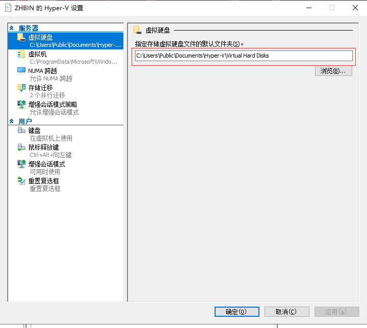 右键选择Hyper-V设置,修改下图所示的存储路径为你要存储的位置。