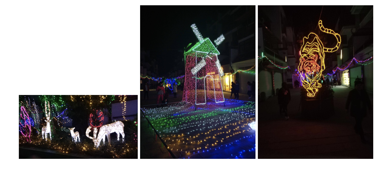 除夕前夜, 14号情人节当晚 , 长瑞驱车 , 带着我以及文湘华 , 诗韵 , 以及这两个人的女儿 , 从衡山跑到南岳去看灯会 . 但期待有多大, 失望就有多大, 没去之前, 我以为是灯火满市井, 各种灯谜, 一幅好不热闹的场面 . 去了发现, 实地游客甚少, 颇显冷清, 令人倍感失望 , 所谓灯会是一堆发光二极管摆出各种造型的灯而已 , 毫无游玩的兴致 . 走了两圈就便离开了 .