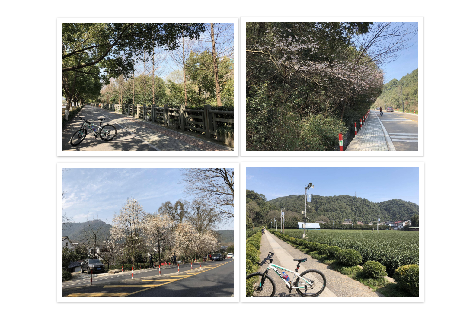 待到周末, 我开始借着春光 ,开始杭州的第一次骑行 , 领略了一番杭州春天的风光 .