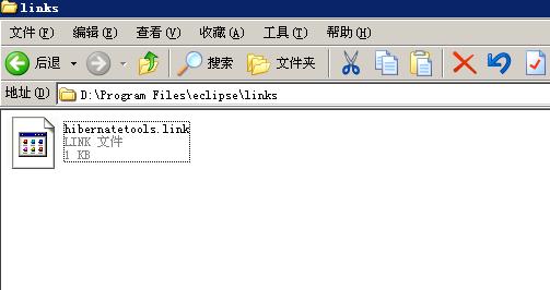 3、在eclipse目录新建目录links (如果已经存在就不用新建),在该目录内新建文件hibernatetools.link,内容为:path=D:/Program Files/eclipse/MyPlugins/Hibernatetools 我这里使用的是绝对路径,大家也可以使用相对路径。