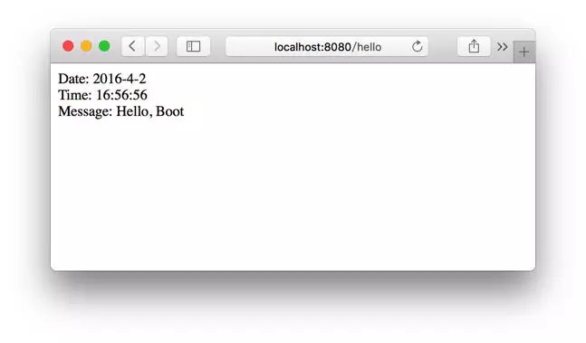 五、启动应用,浏览器打开 http://localhost:8080/hello 查看页面展示: