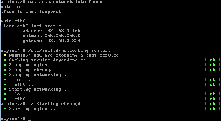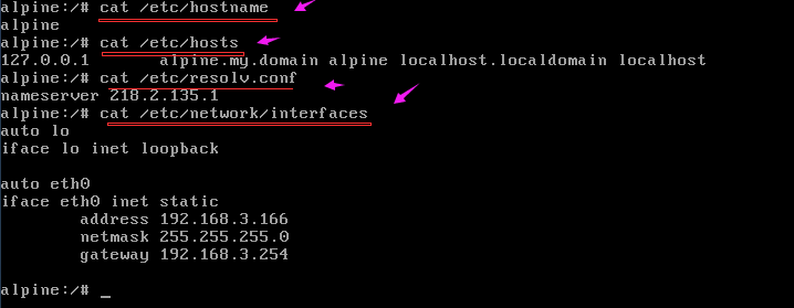 网络相关的文档,详细参见:https://wiki.alpinelinux.org/wiki/Configure_Networking