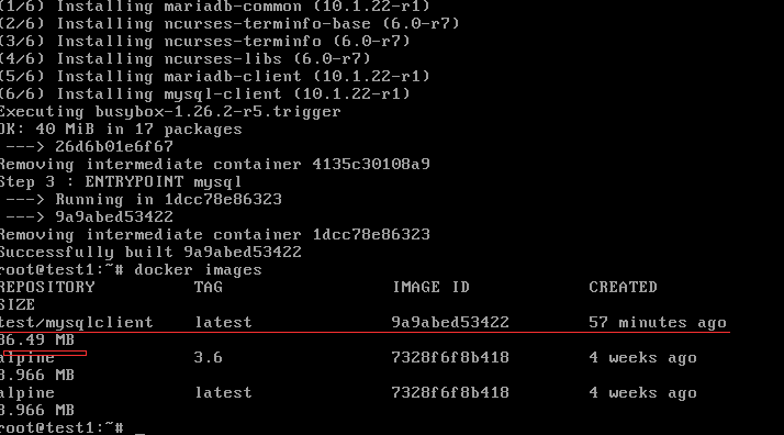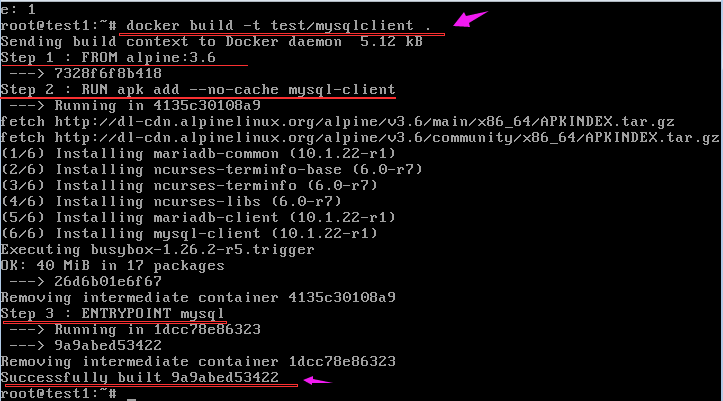docker build -t test/mysqlclient:1.0 .