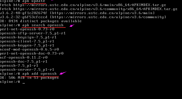 alpine 提供了非常好用的apk软件包管理工具,