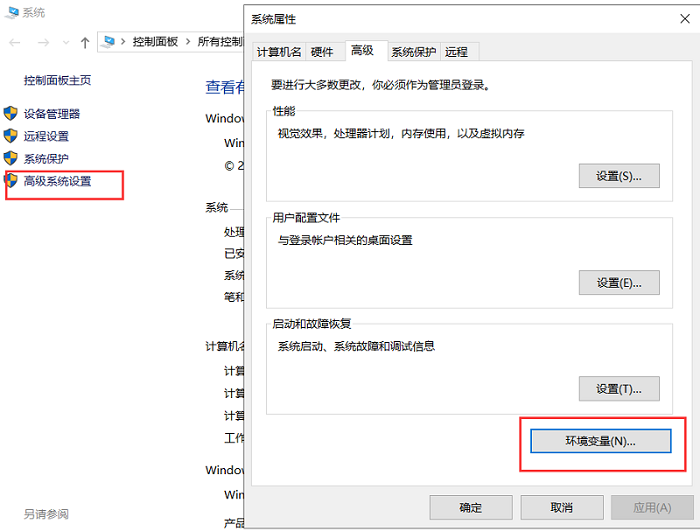 点开电脑的属性——>高级系统变量——>环境变量——>系统变量的Path——>点击新建——>将bin的目录添加进去
