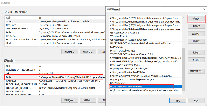 1、将编译好的Opecv库中的bin添加到环境变量中