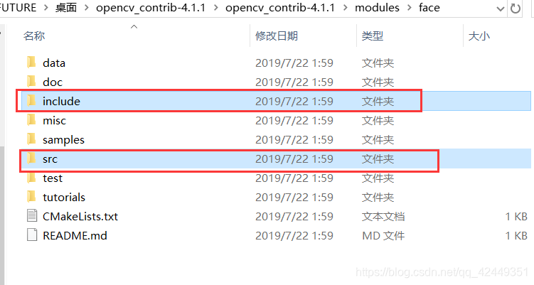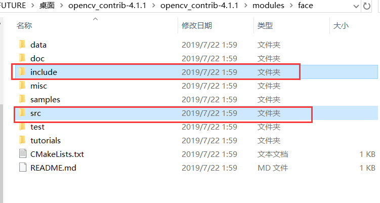 下载完成后,解压找到\modules\face 然后include里面的就是opencv2,打开后就是face和face.hpp头文件,src里面是源文件