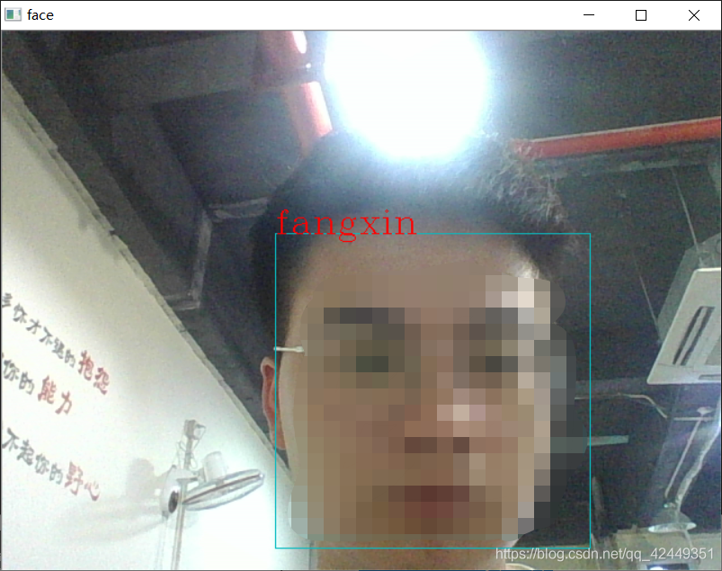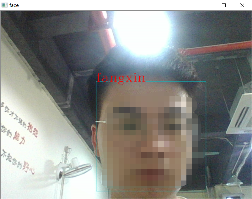 现在我们有训练好的模型,只需要把模型拿出来用就可以进行人脸识别。这里我拿出的是基于Fisher变换的人脸识别训练的模来进行人脸识别。 人脸识别的过程:1、打开摄像头 2、加载人脸检测分类器(haarcascade_frontalface_alt2.xml)和人脸模型 MyFaceFisherModel.xml 3、检测人脸 4、把检测到的人脸与人脸模型里面的对比,找出这是谁的脸。 5、如果人脸是自己拍照的人脸,显示自己的名字。