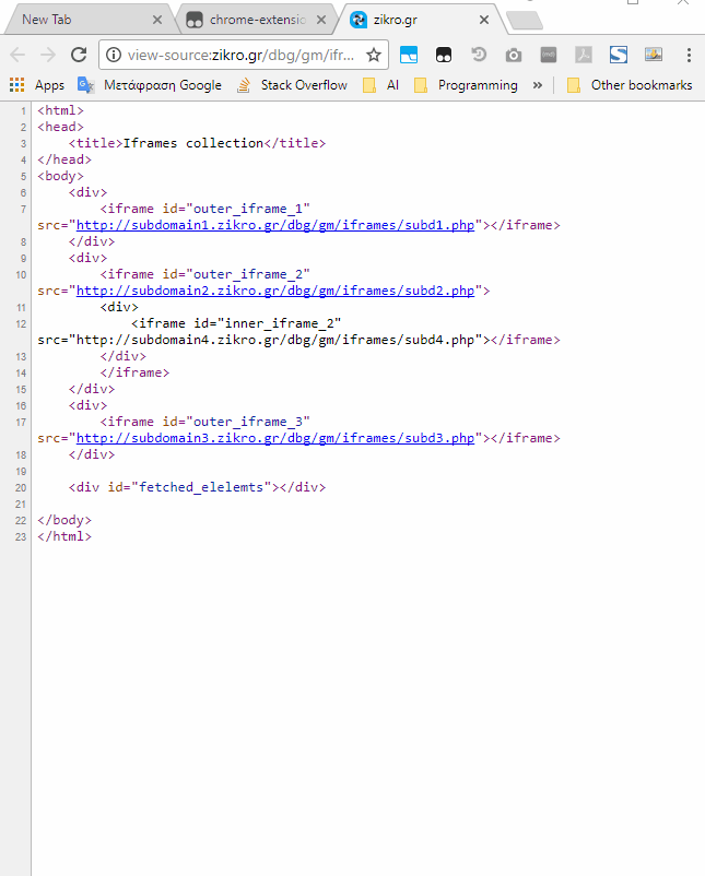I am intending to fetch and modify values within the nested iframes (eg. inner_frame_2) with a Userscript, so bypassing the Same-origin policy should be possible. But examples of GM_xmlhttpRequest seem to rely on GET/POST requests, whereas I only want to deal with the already loaded page data within these iframes.
