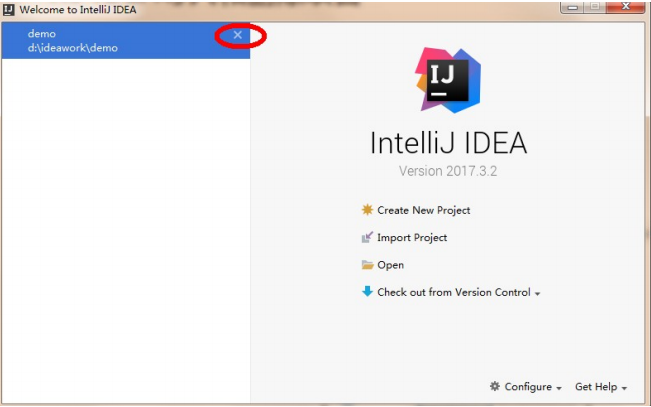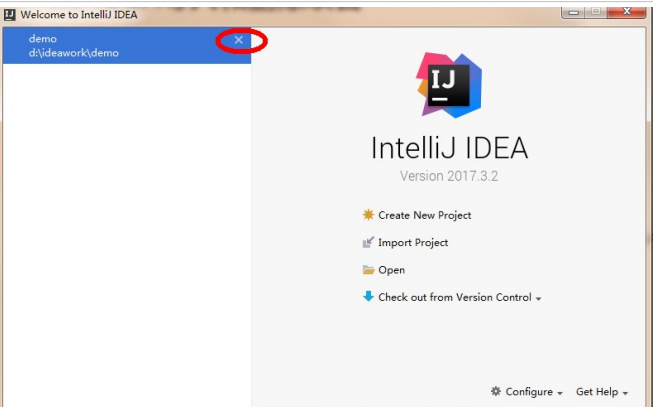 这时IDEA回到了刚启动界面,点击项目上的 X ,IDEA中就没有这个项目了