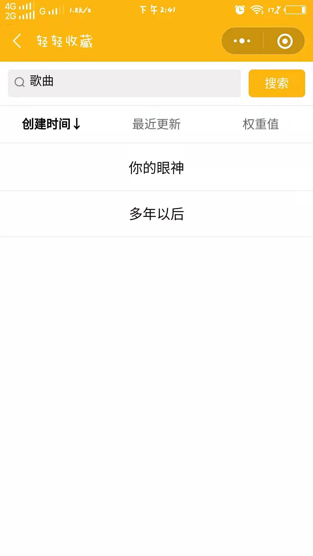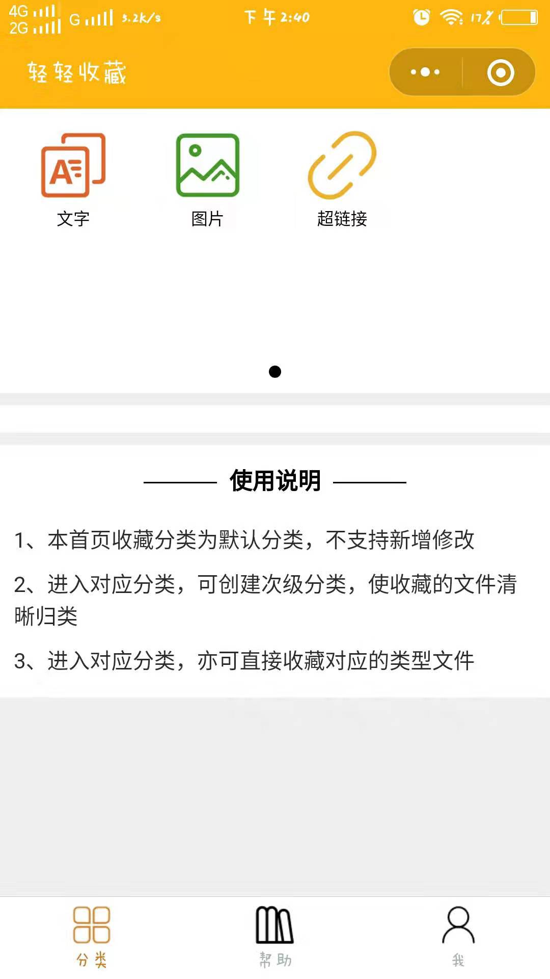 小程序名称【轻轻收藏】,同微信公众号,相关的页面打开已经加载到微信公众号的tab按钮。