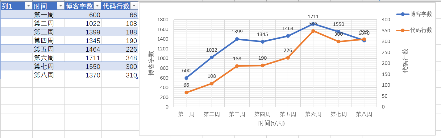 3.2 累积代码行和博客字数