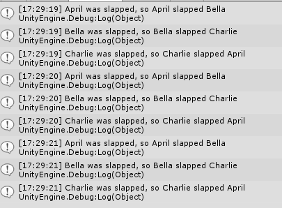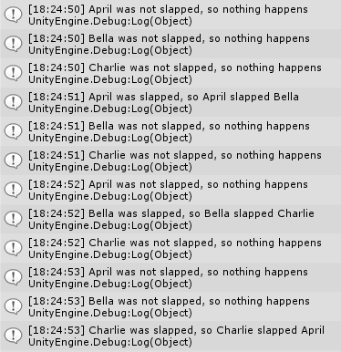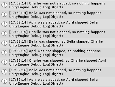 Debug.Log(Name + " was slapped, so " + Name + " slapped " + m_facedActor.Name);