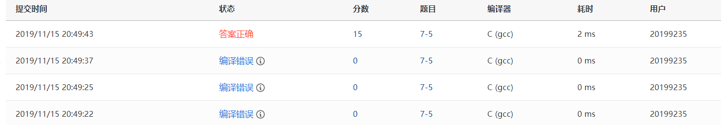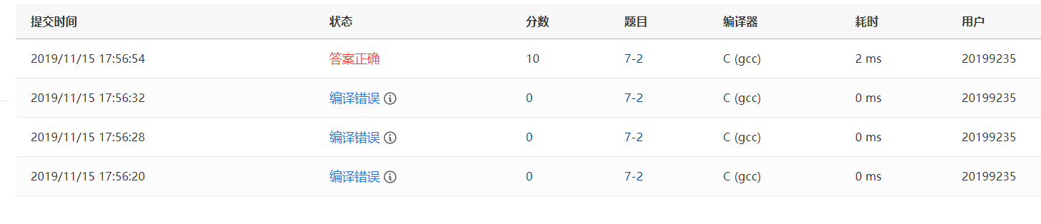 1.1.4 PTA提交列表及说明