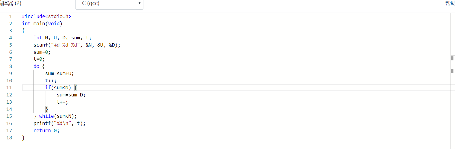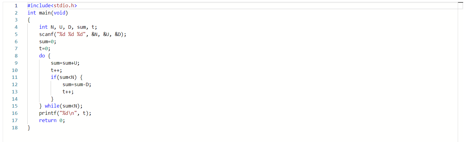 数据表达:用int整型变量定义了 N, U, D, sum, t;