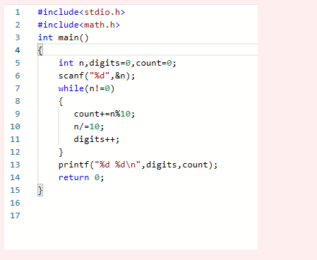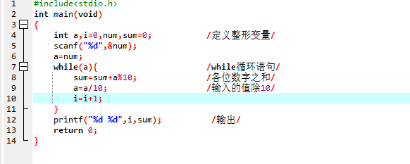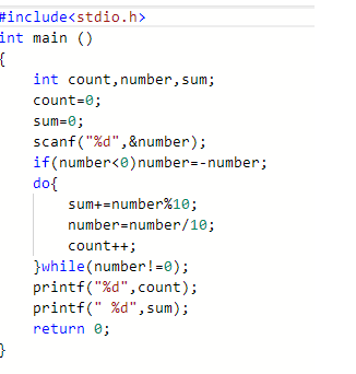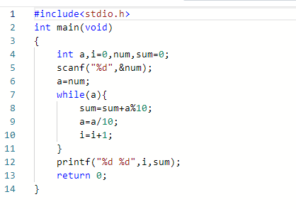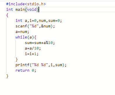 对于给定的正整数N,求它的位数及其各位数字之和。