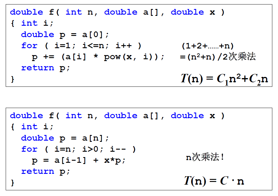 *对之前的计算多项式算法 [见 基本概念-1 例三] ,其时间复杂度T(n)如下: