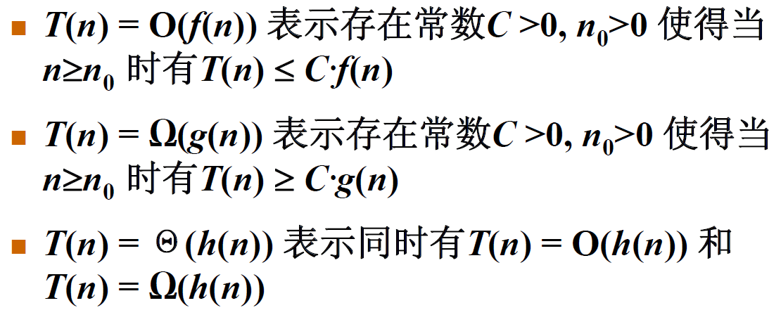 T(n) = Θ(h(n)) = O(f(n)) = Ω(g(n)) // Θ(n) 上下边界相同
