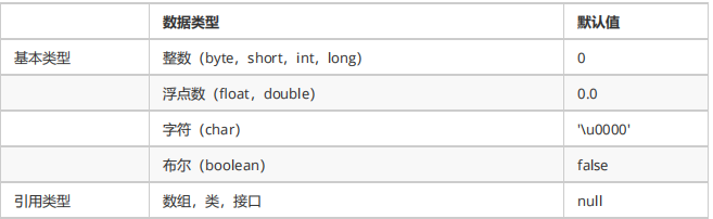 - 如果成员变量没有进行赋值,那么将会有一个默认值,规则和数组一样。