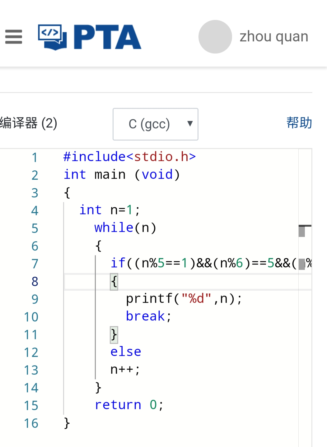 这个题我感觉此同学的比我的更好。他用了do if -else while 时此代码清晰明了。相比我的颜更加简单。我用的是for循环。然后用if嵌套。