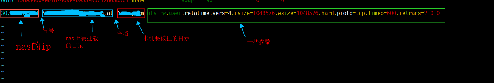 二,编辑 /etc/fstab ,将要挂在的远程目录写入进去: vim etc/fstab (注意编辑要在root模式下)