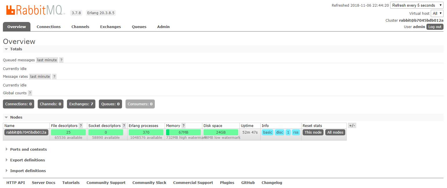 5、容器启动之后就可以访问web 管理端了 http://宿主机IP:15672,默认用户为guest(密码也是 guest),但只能访问localhost。