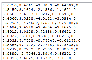 四列依次是小波变换图像的方差,小波变换图像的偏态,小波变换图像的峰度,图像熵,类别标签。其实读者并不需要知道什么是小波变换及其相关改变,只需要知道这是四个特征指标的值,我们将根据这些指标训练模型使用模型预测类别。对于该数据集的更多信息,可以参考 UCI 官网的描述。