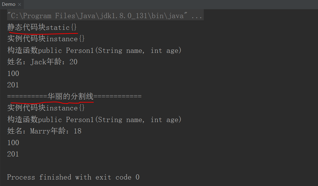 可以看到,程序按照静态代码块 --> 实例代码块 --> 构造函数的顺序执行,且静态代码块确实只执行了一次。