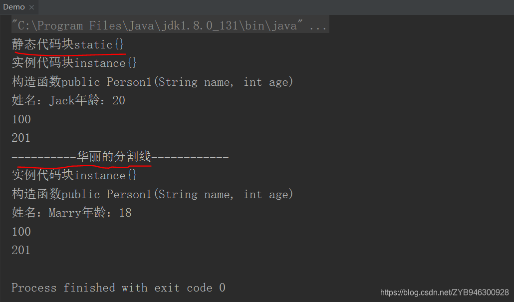 3)、利用静态代码块和实例代码块(静态代码块和实例代码块,在构造函数之前被调用, 静态代码块只会被初始化一次。)