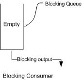 如上图所示:当队列中没有数据的情况下,消费者端的所有线程都会被自动阻塞(挂起),直到有数据放入队列。