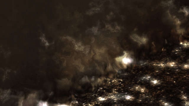The idea started with trying to create streaks of smoke that blur and grow with time. Start with a curve, sum/average colour along it and then make it longer to make the smoke appear to move. Rather than add points to the curve over time to make it longer, the curve has a fixed number of points and their distance increases with time.