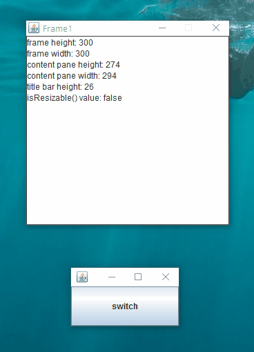 + "content pane height: " + frame2.getContentPane().getBounds().height + lp